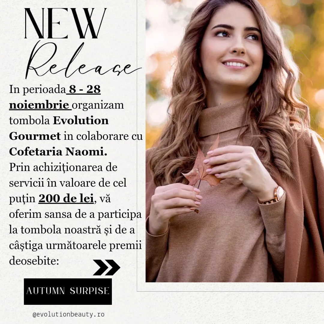 În perioada 8- 28 noiembrie organizam tombola Evolution Gourmet în colaborare cu @cofetarianaomi✅️